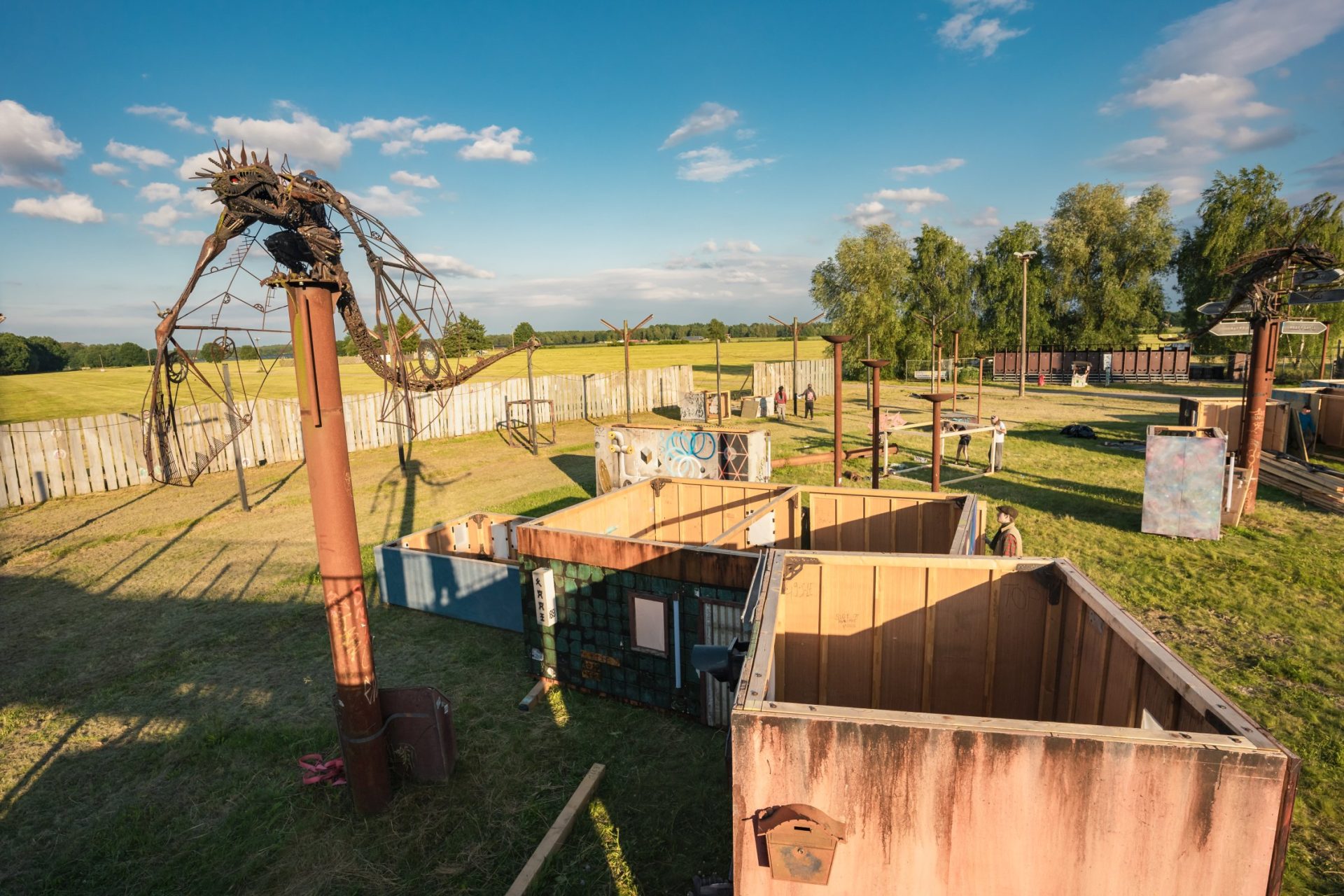 The construction process was impressive in its complexity. In organized collaboration, up to one hundred people worked simultaneously – screwing, hammering, painting, wiring. Amidst the scaffolding, a sense of community emerged, as people shared skills, stories, and moments of creation. Each facade, each corner suddenly told its own stories, while discarded materials from abandoned factories and houses were brought back to life.