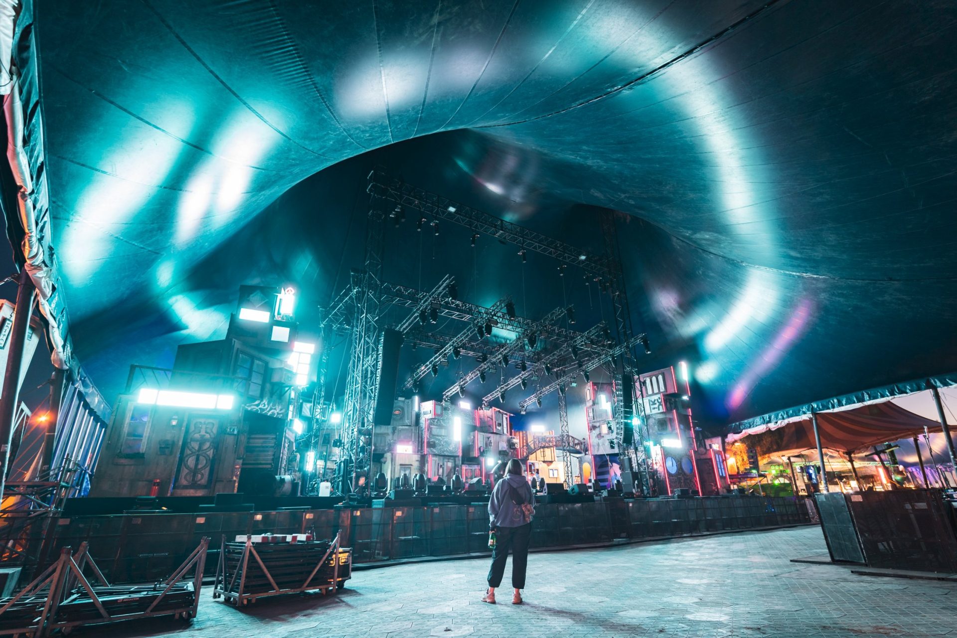 When the festival opened its gates, the magic was complete. The 1,200 square meter tent filled with thousands of visitors, whose movements, dancing, and amazement were the final missing ingredient for this urban utopia. Music, light, and crowds merged into that unique festival moment for which everything was built.